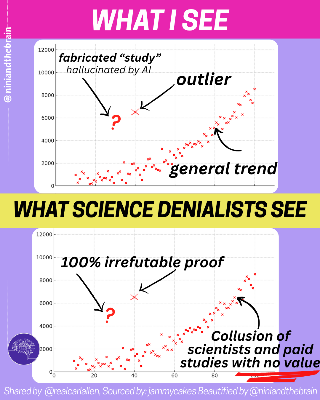 This also ties into what philosophers call the argument from ignorance: the idea that if something has not been completely ruled out, it must therefore be true, again, many citing plausibility. We see this repeatedly with vaccine-autism claims. Despite dozens of high-quality, large-scale studies converging on finding no link, some argue that because science cannot prove absolute impossibility (with the newest request being RCTs on ALL other vaccines), the claim remains “open” because it could be true.